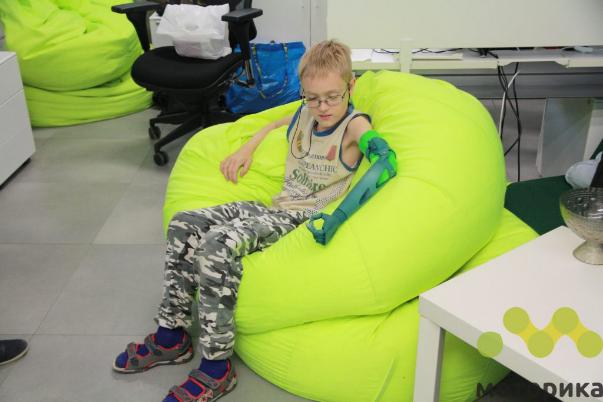Максим уже был у нас в гостях в апреле. Тогда мы вместе занимались разработкой индивидуального протеза предплечья. Теперь Максим вернулся из лагеря, приехал к нам и примерил свой новый зеленый протез, цвет которого он выбирал сам. Максим активно участвовал в установке протеза, комментировал процесс и открыто общался со специалистами Моторики. Наш новый юный пользователь сразу же попробовал Киби в действии, тренируясь на различных предметах в нашей лаборатории.