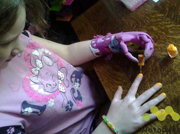 В начале июня мы установили новую версию тягового протеза «Киби» 12-летней Ире из Архангельска. Протез для Иры выполнен в розовом цвете и оснащен насадкой для скакалки. Ира быстро освоила протез и уже научилась самостоятельно красить ногти.