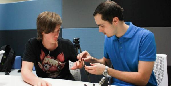 Оскар приехал к нам на несколько дней. Наш гость из Санкт-Петербурга. Ему 18 лет. Сейчас он закончил физико-математическую школу, и впереди университет. Он поступает на техническую специальность. Во время установки протеза руки он обсуждает с нашим протезистом Антоном устройство КИБИ-рук и, кажется, им очень интересно.