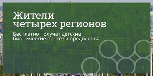 Сейчас наша команда может бесплатно установить протезы для детей от 7 до 16 лет в следующих регионах: Республика Татарстан, Белгородская область, Республика Удмуртия и Новгородская область. Он подойдет детям с врожденными и приобретенными травмами на уровне кисти и предплечья.
