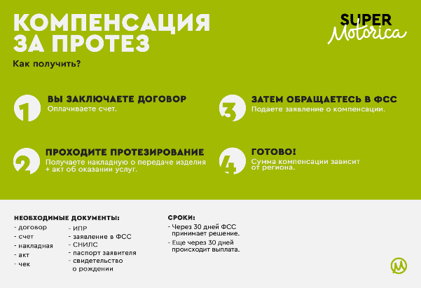 Пакет документов на компенсацию: договор, счёт, накладная, акт, чек, ипра, заявление пишут в фсс, Снилс, паспорт заявителя, свидетельство о рождении ребёнка.