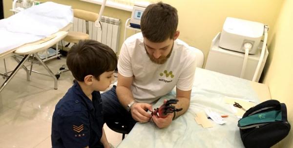 Наша команда продолжает путешествовать по городам России и устанавливать протезы. На прошлой неделе мы посетили Каспийск, там нас ждала семья мальчика по имени Эсельдер Айдемиров. Эсельдеру 7 лет, и с рождения у него отсутствуют пальцы на правой руке. Его родители обратились к нам, прислали необходимые мерки, фотографии и видео, и работа над протезом руки КИБИ началась.