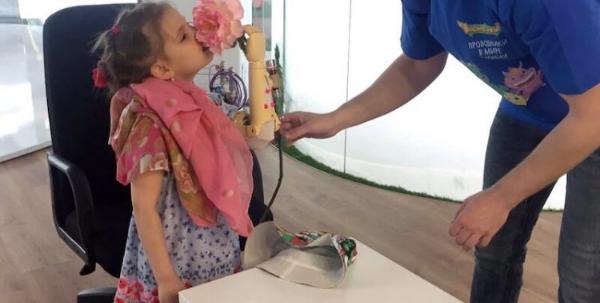 Вместе они прошли целую череду испытаний под космическим куполом "Технопарка": надеть панаму, победить летучих мышей, поймать мяч и многое другое. Это приключение Алина прошла на ура, и что важно, она попрактиковалась в умении владеть протезом и совершать с его помощью разные действия.