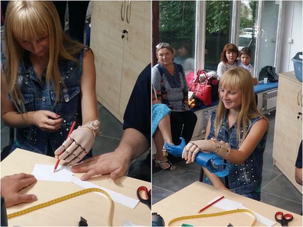 Уже на месте была изготовлена специальная культеприемная гильза и термопластичного материала и установлен протез. А дальше началось интересное! Это был абсолютно новый опыт для Кристины: использовать ту руку, которой раньше не было.