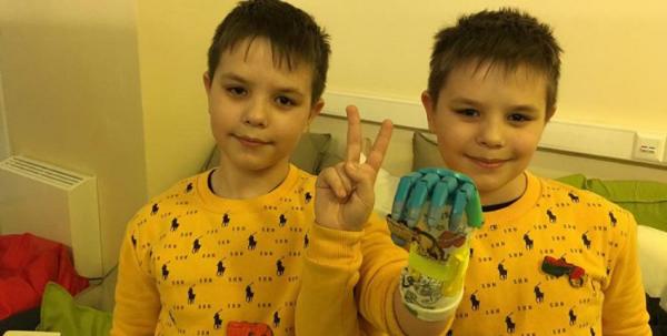 Несмотря на аплазию кисти, Саша старается ни в чем не отставать от брата. С новым протезом руки это будет еще проще. Специально для Саши мы изготовили желто-синюю руку супергероя. В первый же день Саша примерил протез и начал учиться им управлять. Леше очень понравилась новая супер-рука брата.