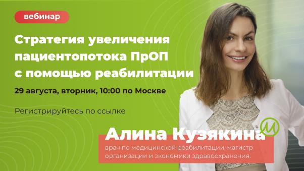 Вебинар проведет Алина Сергеевна Кузякина, врач по медицинской реабилитации, магистр организации и экономики здравоохранения.