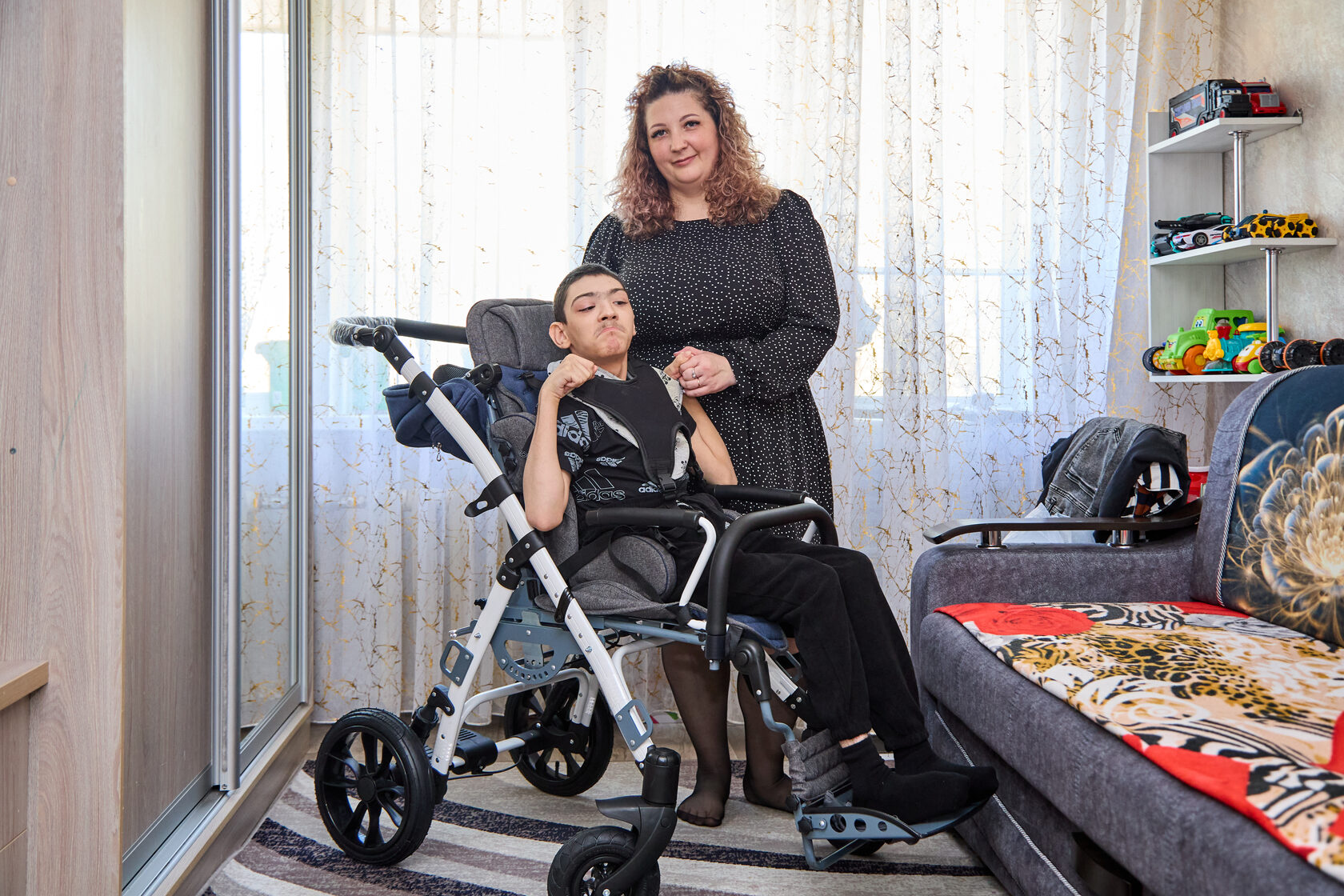 Захару 4 года. В 2021 году, когда мальчику не было и года, ему поставили диагноз микроцефалия. Еще при рождении врачи обратили внимание, что объем черепа у мальчика уменьшен, в дальнейшем его развитие заметно отставало от возрастной нормы. Родители Захара столкнулись с вердиктом врачей, что у Захара тяжелый порок развития центральной нервной системы. Благодаря фонду и «Моторике» теперь Захар пользуется новой коляской повышенной комфортности Bimbo 9750.
