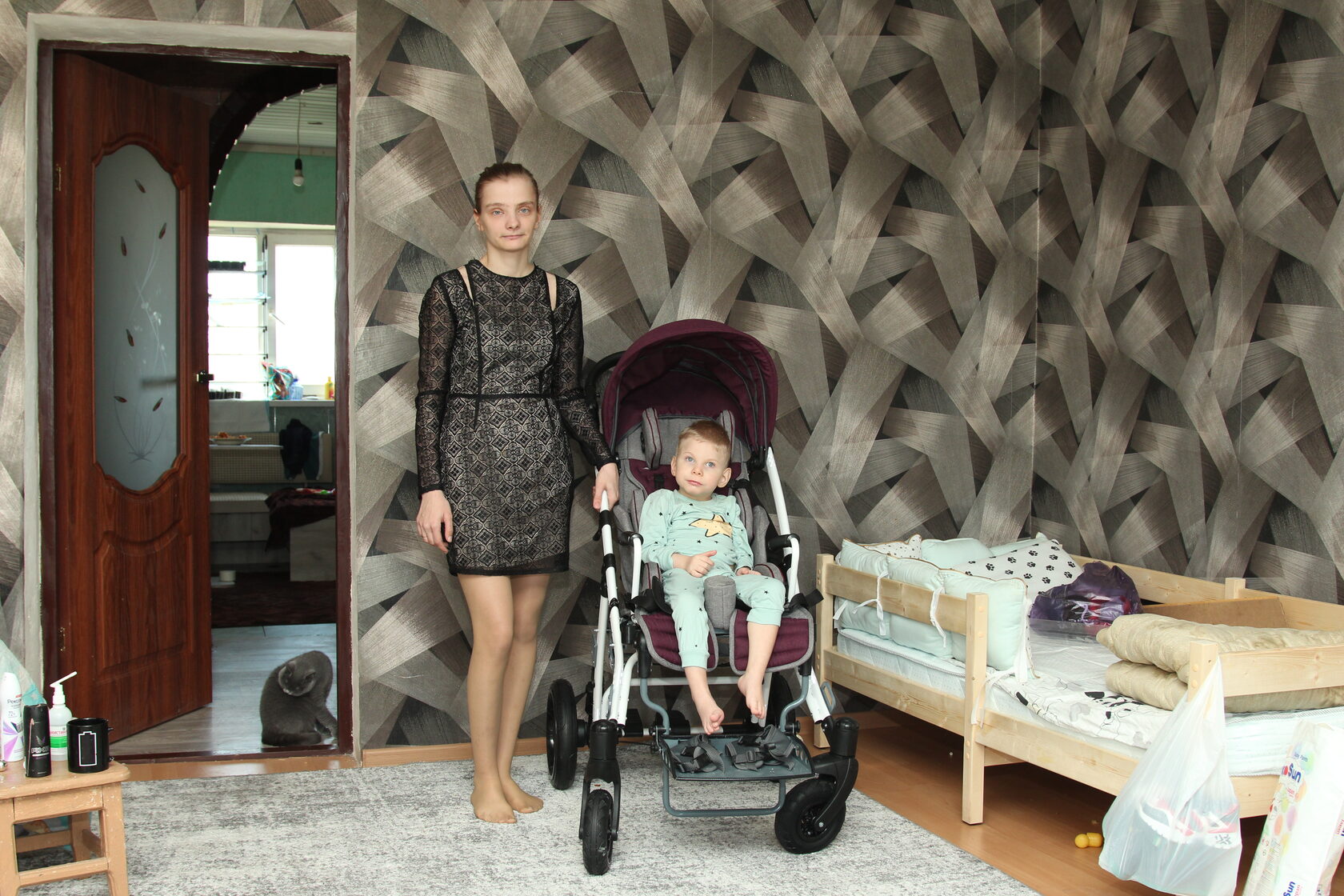 У Богдана с рождения микроцефалия и тяжелый порок развития нервной системы. Питание осуществляется через трубочку. Мама воспитывает его одна. Болезнь очень сказывается на развитии подростка, в свои 17 лет он весит всего 30 кг. Новую коляску для Богдана произвела компания «Завод специального оборудования», которая входит в группу компаний «Моторика».
