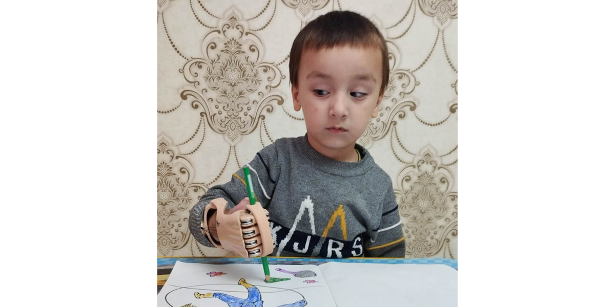 Свой первый киби-гаджет — функциональный протез кисти «КИБИ» он получил совсем недавно, но очень им увлекся. «Когда Адам надевает Киби, то чувствует себя уверенным, сильным, самоуверенным. Он относится к киби-ручке ответственно, обращается с ней аккуратно. Всем показывает киби и говорит, что он — супер-герой, дети с удивлением смотрят, интересуются. Адам сам просить надевать протез дома и на улицу когда выходим. Использует каждый день от 30 минут до двух часов». — рассказывает его мама Патимат.