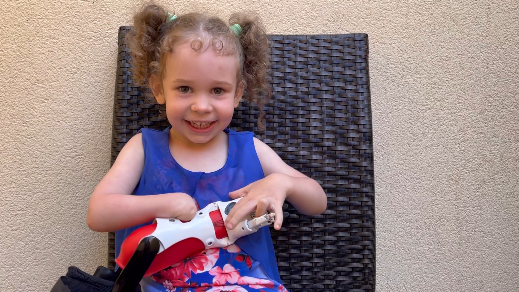 Первую «волшебную ручку» как называет кибергаджет Женя ей помог получить благотворительный фонд. Но пользоваться ею сразу девочка не стала. Она играла с киби-ручкой, катала ее в коляске, но надевать отказывалась. Через некоторое время стало ясно — гильза была неудобная, пришлось ее поменять.
