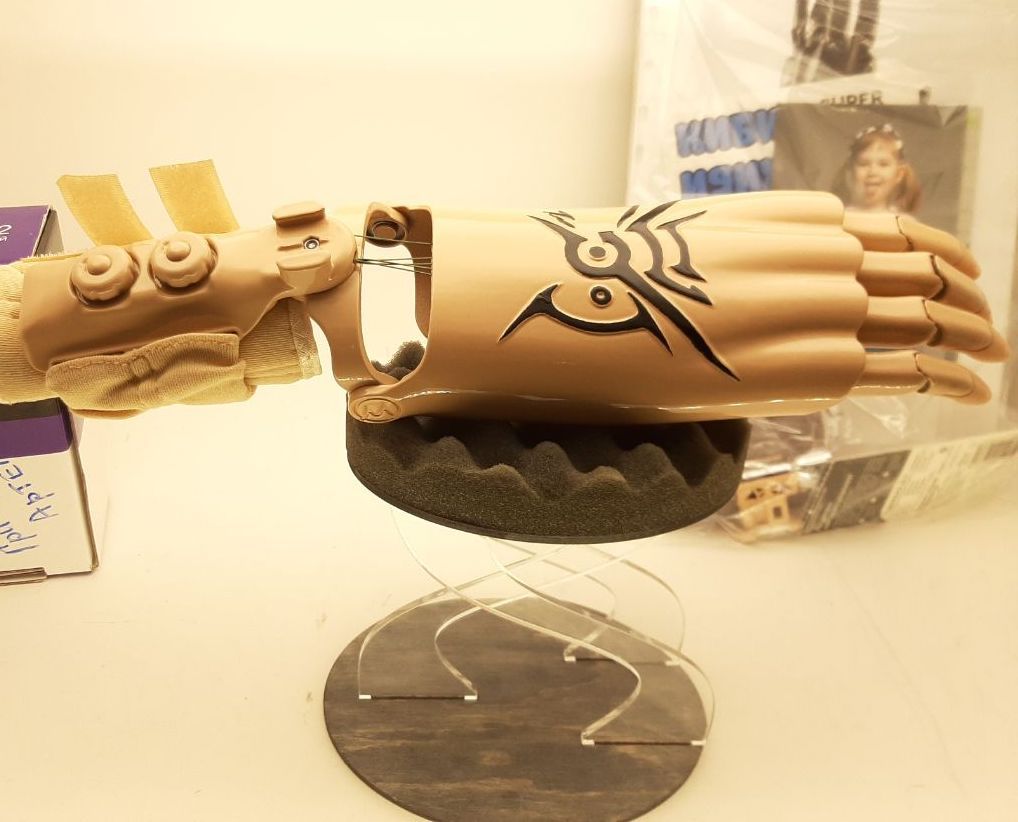 Одно из его увлечений повлияло на выбор рисунка для протеза — руны из игры Dishonored. Свой киби-гаджет мальчик получил недавно и пока осваивает. У него уже легко получается брать предметы побольше, а с мелкими пока беда. Но регулярные тренировки и вызовы себе смогут прокачать и это умение.
