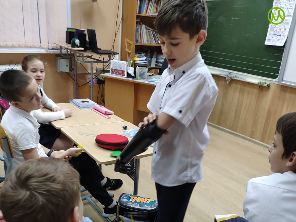 «Мои одноклассники, когда я приносил Страдивари, просто брали его, трогали. Мне это не нравилось. Сейчас я не ношу в школу свои бионические протезы, потому что они отвлекают одноклассников. Бионический протез я использую только дома для тренировки» — объяснил мальчик.Необычное решение — кибер-урок