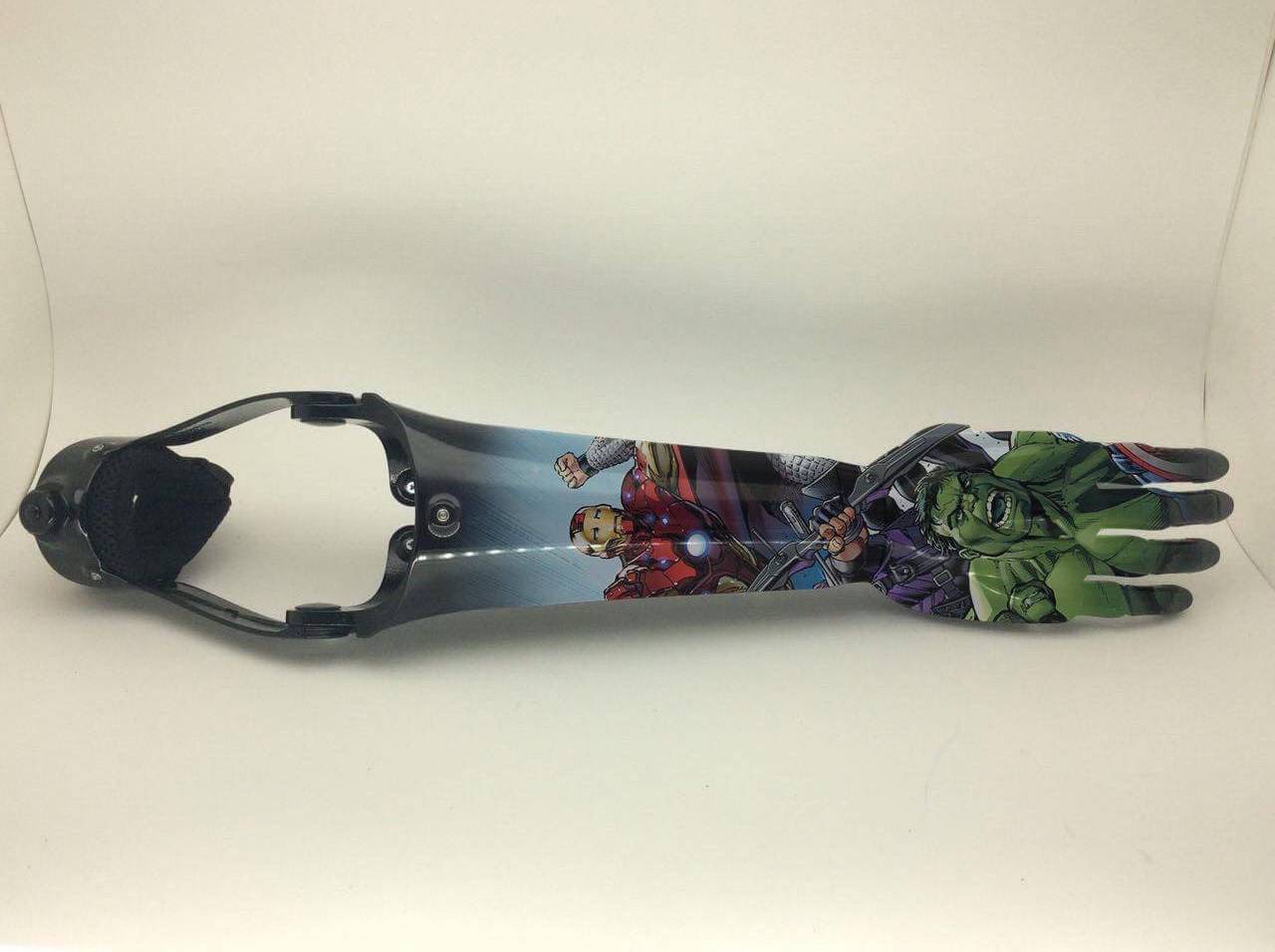 Перед тем, как приступать к изготовлению самого протеза, идет этап визуализации будущего изделия. 3D-модель протеза можно рассмотреть со всех ракурсов, увидеть, как сочетаются цвета, как они «уживаются» с рисунком и дизайном в целом. Уже после полного одобрения будущего кибер-человека протез запускается в производство. Но это уже совсем другая история!